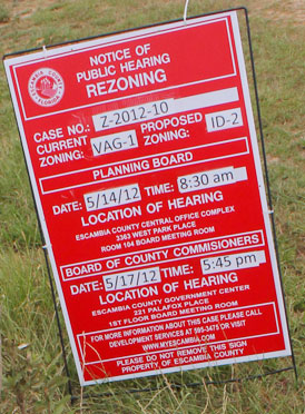 The Planning Board gave the go-ahead to rezone the property from “village agricultural” to “general industrial”, despite original findings that the plan was not consistent with the Escambia County Comprehensive Plan and the Land Development Code.