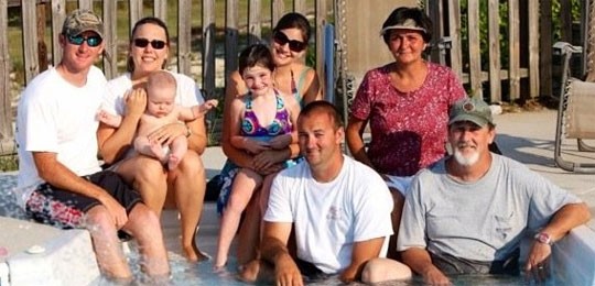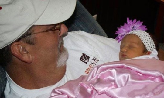Pictured top: Flomaton cancer patient Tommy Allgood (far bottom right) and his family. Pictured inset: Allgood and his wife Nancy. Pictured below: Allgood with new granddaughter Natalie. Submitted photos for NorthEscambia.com, click to enlarge.