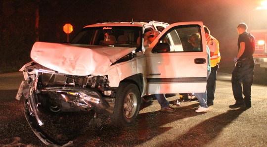 The accident happened at the intersection of Highway 95A and Bet Raines Road just after 4:00 a.m. It appeared the driver of a Ford F150 pickup pulled from a stop sign on Bet Raines Road into the path of a Chevrolet Tahoe traveling on Highway 95A. Two people in the pickup were transported by ambulance to a Pensacola hospital with non-life threatening injuries, while two people in the Tahoe refused treatment.