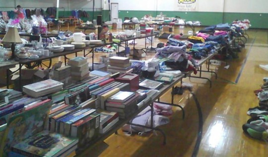 Pictured: Volunteers worked Friday night to prepare for Saturday’s yard sale in Flomaton to benefit baby Blaze Johnson. Submitted photo for NorthEscambia.com, click to enlarge.