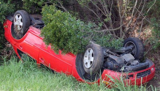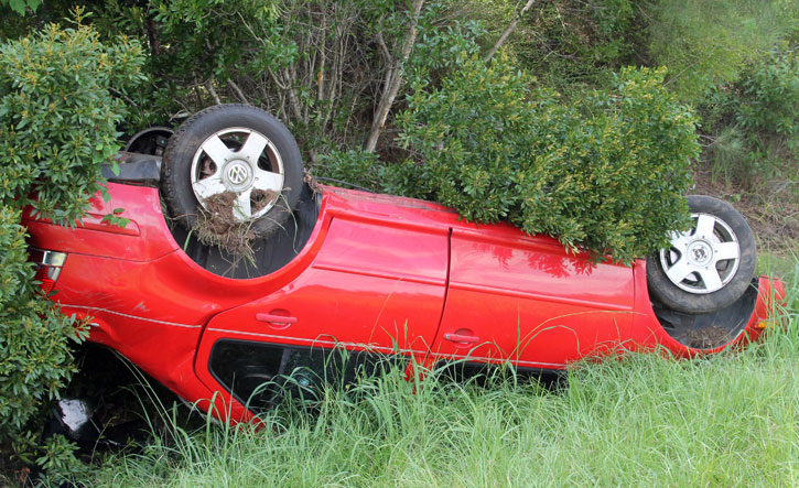 The driver of a southbound car apparently lost control in a curve on Highway 29 near Cox Road just before 3 p.m., over-corrected, ran off onto the shoulder of the road and overturned. The vehicle came to rest upside down.