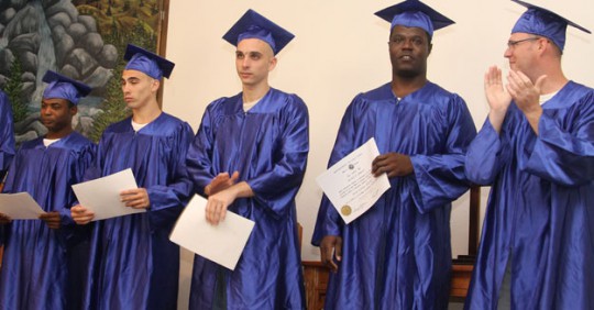 Class valedictorian is Jason Chandler. He began an eight year sentence in February for robbery with a deadly weapon in Hernado County. Salutatorian was Joshua Dunham, serving a two-year sentence for child neglect, criminal mischief and marijuana possession. There were 10 inmates in all receiving their GED certificates Friday morning.