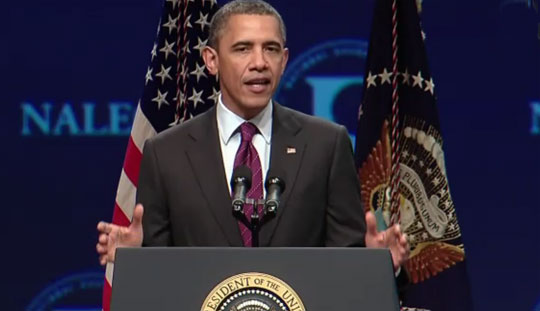 In remarks to the National Association of Latino Elected and Appointed Officials, or NALEO, the president touted his decision to allow young, undocumented immigrants to remain in American without fear of deportation — but also kept up pressure on Congressional Republicans, saying the move was a temporary solution to a long term problem.