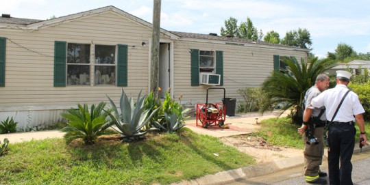 Pictured: Fire damaged this Stacey Road mobile home Friday afternoon. NorthEscambia.com photo , click to enlarge.