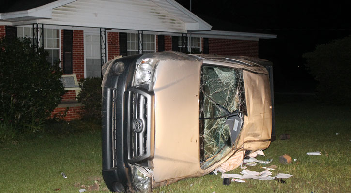 The accident happened about 2:30 a.m. on Highway 97 just north of Howell Road. Hall was northbound on Highway 97 when he drifted onto the shoulder as he rounded a curve. He over-corrected, causing him to lose control. His 2010 Toyota pickup slid across both lanes of Highway 97, left the roadway and overturned, knocking over a small tree and coming to rest on its side near a brick home.