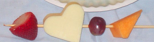 For other works of art, use toothpicks, skewers, popsicle sticks, or edible pretzel rods to make shish kabobs. Cut out cheese shapes with small cookie cutters and add to the stick alternating with cut up fruits and vegetables. Make a beautiful edible bouquet.