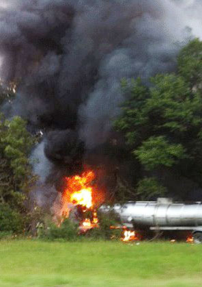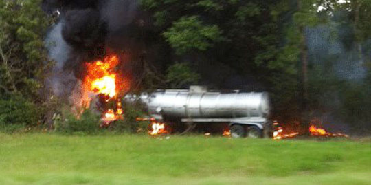 Pictured: A fuel tanker truck burns on I-65 south of Atmore Tuesday evening. Reader submitted photo for NorthEscambia.com, click to enlarge.