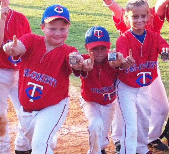 Pictured: The Tri-County All Stars celebrate Tuesday after winning the 2012 8U Machine Pitch District Baseball Tournament in Walnut Hill. NorthEscambia.com photos submitted by Hollie Sims, click to enlarge.