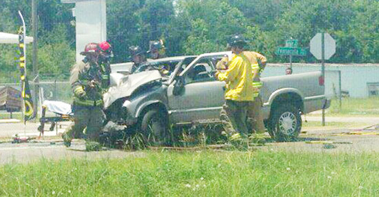 According to the Florida Highway Patrol, 17-year old David Hicks of Pensacola was northbound on Highway 29 when his 1999 GMC pickup crossed over the grassy median, went airborne and struck a 2012 Dodge Voyager. The driver of the Dodge, 67-year old James Benson, Jr., of Gulf Breeze was transported to Sacred Heart Hospital with minor injuries.