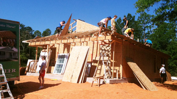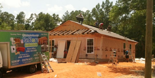 Pictured: Converge youth work to build a house with Habitat for Humanity on Wednesday. Submitted Photos by Brad Johnson for NorthEscambia.com, click to enlarge.