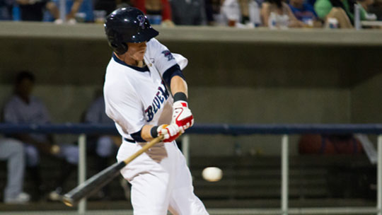 Pictured: Brian Peacock extended his hit streak to 10 games in the Fish’s 4-2 loss Tuesday. Photo by Chris Nelson for NorthEscambia.com, click to enlarge.