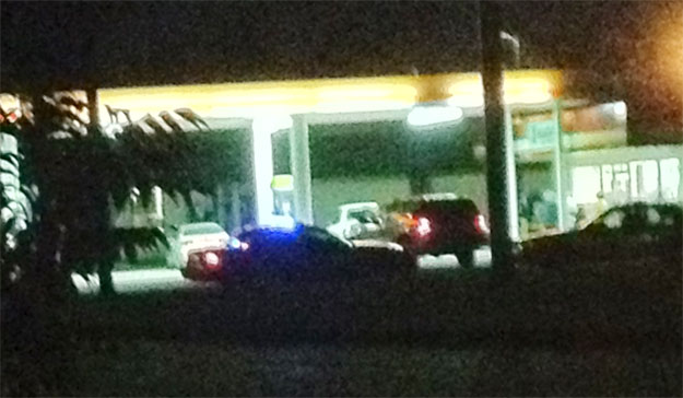 Pictured above and below: These reader submitted cell phone images show police on the scene of an armed robbery Saturday night in Flomaton. Submitted photos by Anthony Stinson for NorthEscambia.com, click to enlarge.