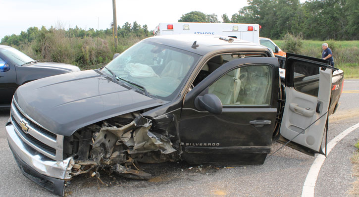 Pictured: One person was seriously injured in this two vehicle crash Monday morning in Canoe, Ala. NorthEscambia.com photos, click to enlarge.