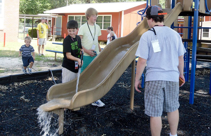 Pictured top: Local youth converged on Escambia County last week in a youth camp/missions project. Pictured inset: Youth take part in a cleanup at Byrneville Elementary School. Pictured below: Ray’s Chapel Pastor Nathan Brown with the church’s youth group. Submitted photos by Ramona Preston for NorthEscambia.com, click to enlarge.