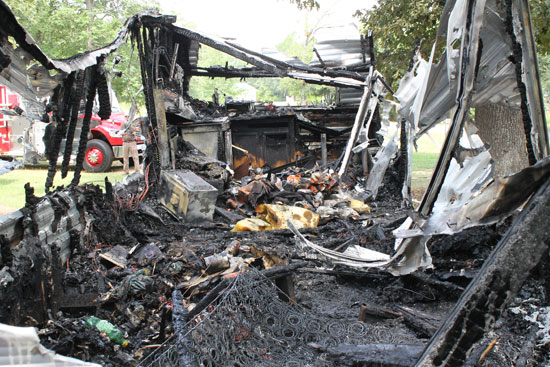 Fire completely destroyed the travel trailer on Christian Road, just north of old Atmore Road about 9:30 a.m.. The adult male occupant was not at home at the time of the blaze.
