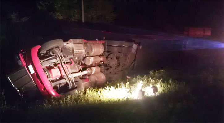 According to the Florida Highway Patrol, 31-year old Robert Maurice Kline of Ponchatoula, LA, was eastbound on I-10 when be began to fall asleep and lost control of the 2012 Peterbuilt semi. He veered onto the shoulder where the vehicle overturned.