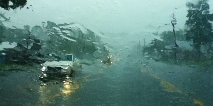 Pictured: Heavy rain falls on Highway 29 at the Century Town Hall Thursday afternoon.