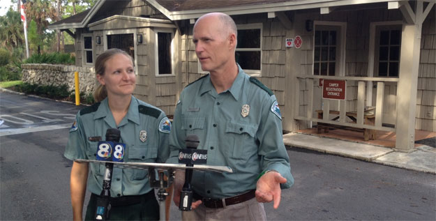 Gov. Rick Scott spent his 11th “Let’s Get to Work” day working as a park ranger at Hillsborough River State Park Thursday.