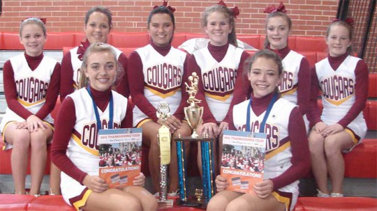 The varsity squad was awarded Home Pom Champs, Extreme Routine champs, AISA Small Squad State Champions, and a Leadership Award. Individual varsity members were also honored. Page Lancaster and Caitlyn Bruley made AISA All Star and UCA All American, and Lancaster was invited to try out for UCA staff.
