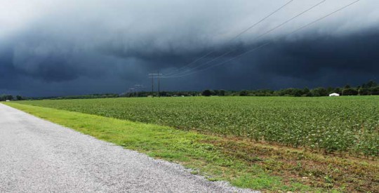 Heavy storm clouds rolled through the North Escambia area Saturday afternoon. Pictured are the the clouds moving across Gobbler Road in Walnut Hill.
