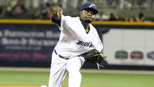 Pictured: Wirfin Obispo earned his third straight win Tuesday night for the Blue Wahoos. Photo by Chris Nelson for NorthEscambia.com, click to enlarge.