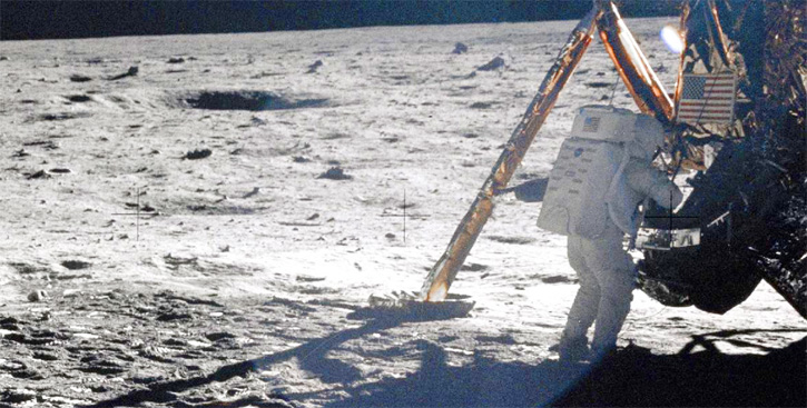 “Houston, Tranquillity Base here. The Eagle has landed,” Armstrong said, telling a tense and waiting Earth that men had finally reached the lunar surface.