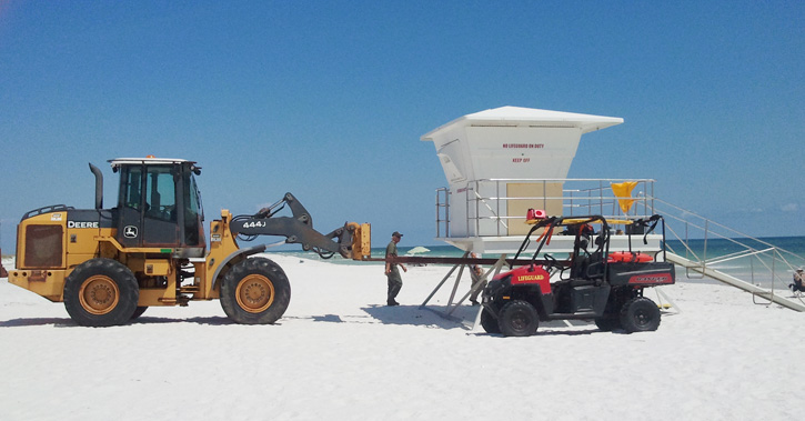 Pictured top: Lifeguard towers at Ft. Pickens and the Gulf Islands National Seashore were moved away from the potential wrath of Isaac Friday afternoon. Submitted photo by Sabrena Padgett for NorthEscambia.com, click to enlarge.