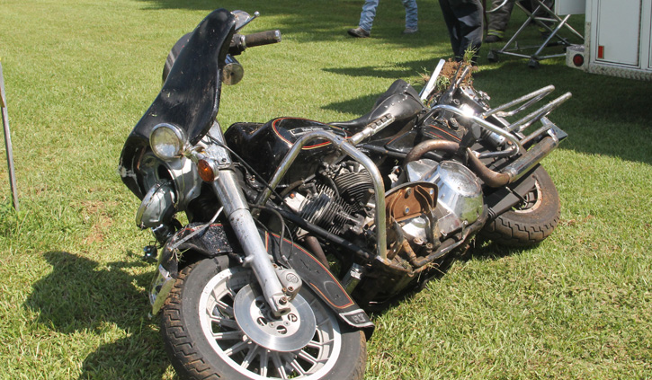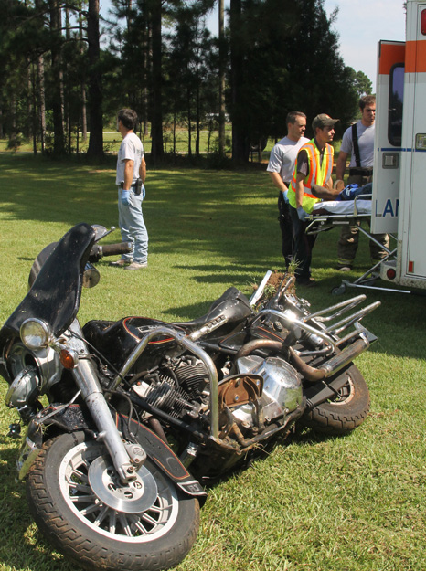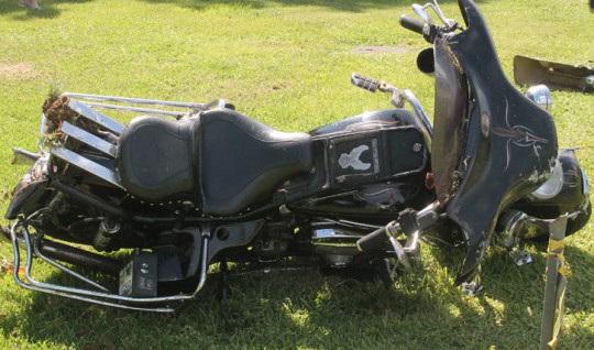 The accident happened about 10:15 a.m. just north of Tungoil Road. The driver of an antique Harley apparently lost control, ran off the roadway and was ejected as the motorcycle flipped end over end into a ditch.