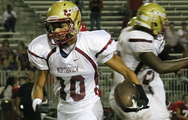 Pictured top: Senior Neiko Robinson picks up yardage for the Northview Chiefs last Friday night against Panama City Bay. NorthEscambia.com photo, click to enlarge.