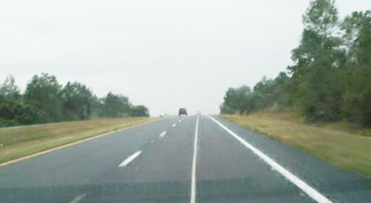 An “extra” lane appeared on Highway 29 in McDavid Saturday. A white paint stripe in the middle of an outside lane now stretches along several miles of a recently paved area of Highway 29 from McDavid to near Barth. The source of the paint was not immediately known. Submitted photo by Misty Lord for NorthEscambia.com, click to enlarge.