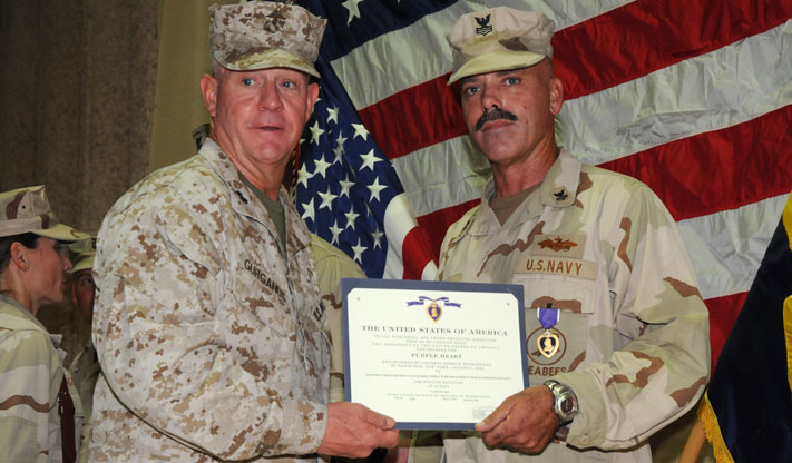 Equipment Operator 1st Class Robert W. Dorch was one of two sailors presented the Purple Heart by Maj. Gen. Charles M. Gurganus, commanding general for Regional Command Southwest, in a ceremony on Camp Krutke, the Seabee camp located on Camp Leatherneck.