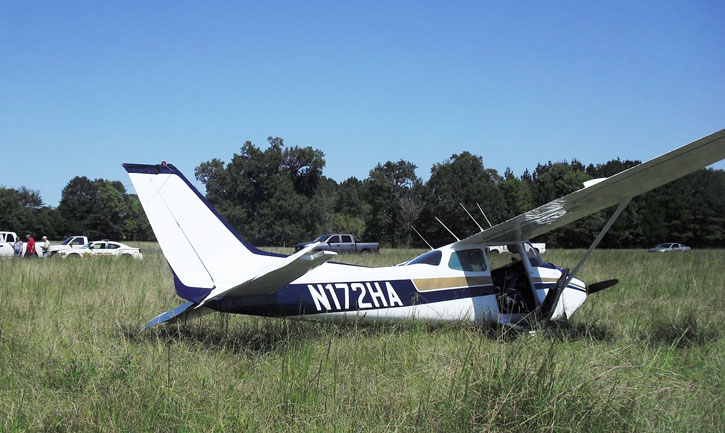 Freddie Wayne “Bo” McCall III of Flomaton was the only person aboard the single engine Cessna 172M when it crash landed in a hayfield near Quitman, Miss., just before noon. McCall was transported by ambulance to Wayne General Hospital in Waynesboro, Miss., and later airlifted to University Medical Center in Jackson, Miss., hospital where was listed in stable condition Wednesday night.