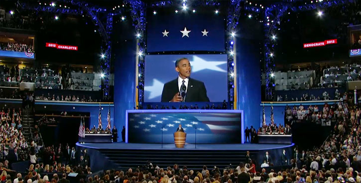 Obama’s speech capped off a night that featured a brief speech by former Florida Gov. Charlie Crist, a Republican-turned-independent, and appearances from Hollywood stars like Eva Longoria and Scarlett Johansson. Democrats highlighted Obama’s achievements — including authorizing a bailout they say saved the American automobile industry and ordering the operation that resulted in the death of Osama bin Laden.