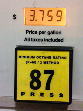 Pictured: In Century, gallon of regular unleaded was $3.75 Monday night. NorthEscambia.com photo, click to enlarge.