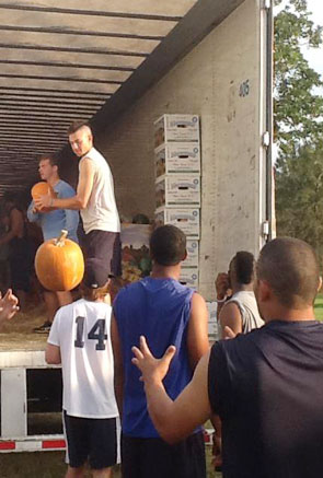 Friday afternoon, members of the Pensacola State baseball team helped church volunteers unload 1,556 pumpkins from an 18-wheeler.