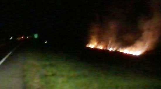 Pictured: This cellphone photo shows a small grass fire sparked by a downed power line in Cantonment Tuesday morning. Submitted photo by Gordon Godfrey for NorthEscambia.com, click to enlarge.