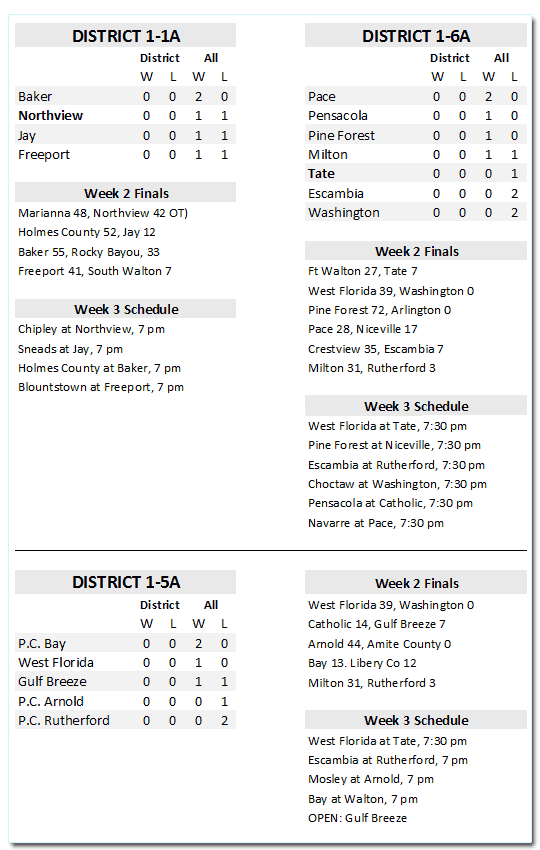 There are winners and losers after week one of high school football in Florida, but none of the area teams have yet to play a district game.