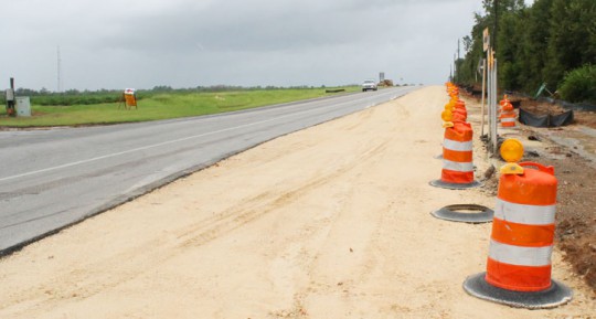 Pictured: A turn lane from Highway 97 to Highway 29 in Molino is expected to be completed this month. Work on the project ceased for the Labor Day weekend. NorthEscambia.com photo, click to enlarge.