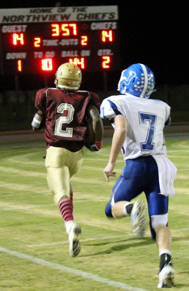 With 3:55 in the second, Kyles was in again with a 44-yard touchdown, 21-14. But that was not good enough for Kyles, who hit the end zone again from one yard out with 32 seconds in the half, 28-14 Northview.