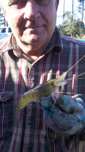 Pictured: Russell Kelson with one of his Walnut Hill freshwater shrimp. Submitted photos for NorthEscambia.com, click to enlarge.