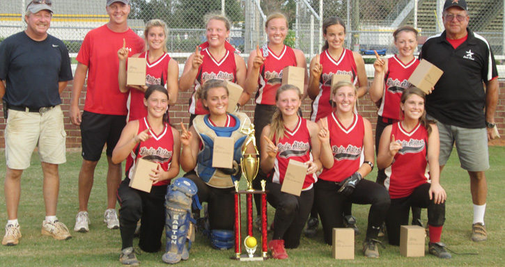 Pictured: The Molino Lady Astros: (front, L-R) Gracie Kilgrease, Atmore Christian, utility; Caitlyn Hagan, Pace, catcher, Briana Rogers, West Florida, center field; Samantha Burks, Tate, shortstop; Leah Nipper, Uriah, Ala., utility; (back row) Jessica Briggs, West Florida High, pitcher, infielder; Megan Green, Pace, pitcher, infielder; Ashley Barnett, Tate, first base; Amber Peebles, West Florida High, infielder, outfielder; Lacy Boyd, Pace, right fielder. Not pictured: Ronnie Renfroe, – Tate, first base, pitcher; Taylor Campbell, Choctaw High, catcher. Head Coach Donnie Nicholson, coaches Shawn Green, and Mark Burks. Submitted photo for NorthEscambia.com.