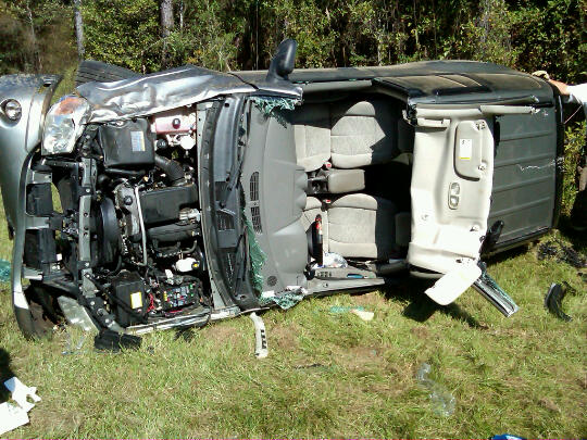Money apparently lost control and ran into a ditch, with her 2007 GMC Envoy coming to rest on its side. She was trapped inside the vehicle for a brief period as first responders used the Jaws of Life to free her.