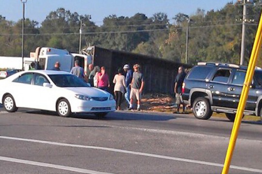 The Florida Highway Patrol said 49-year old Craig Benner of Pensacola failed to stop in time at the intersection, tried avoid a vehicle, lost control and overturned.