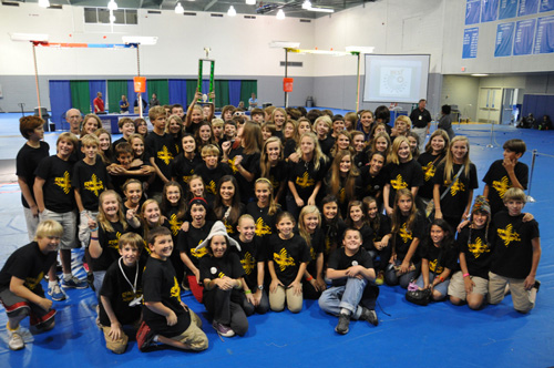 Pictured top: Students race to lift cargo up to the Space Elevator with the robots at the 2012 BEST Robotics competition. Pictured inset: Seaside Neighborhood Middle School won the BEST award and will advance to the regional competition at Auburn University in December. Submitted photos for NorthEscambia.com, click to enlarge.
