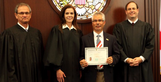 Pictured top: New American citizen César González (holding certificate) took the oath of citizenship recently at the federal courthouse in Pensacola. Submitted photo for NorthEscambia.com, click to enlarge.