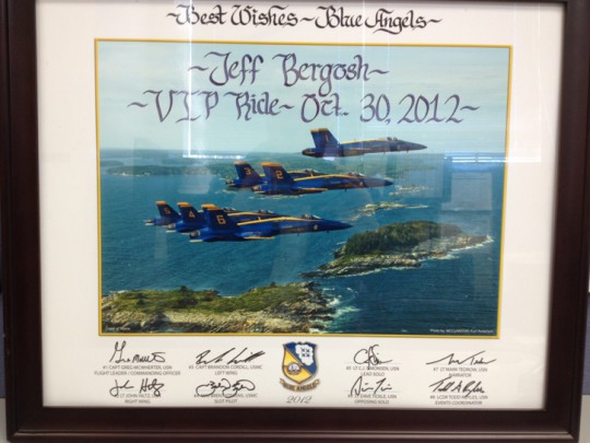 Aside from the majestic beauty of the day which allowed for views of over 20 miles up and down the coast, the final highlight was coming in to NAS Pensacola for a landing amidst the beauty of our local beaches and emerald water. After the flight, the Blue Angels presented me a signed commemorative photograph, as well as the complete cockpit video of the entire flight (Something my wife and kids now affectionately refer to, as their “endless source of entertainment” due to my facial expressions up there during the flight.) And to answer the one lingering question everyone has asked — NO, I did not black out during the flight — even while pulling G’s. I did grunt and strain but never blacked out!