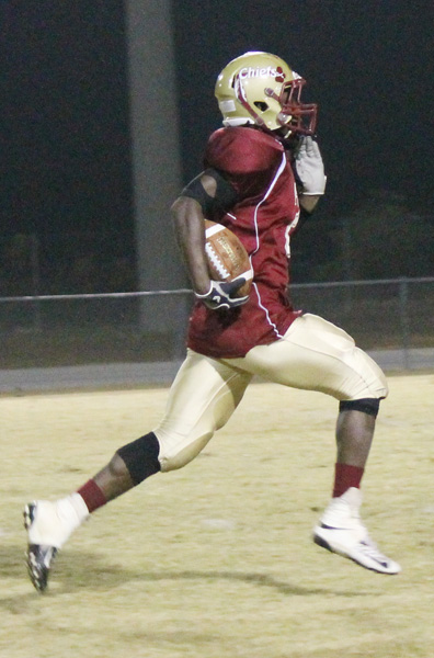Cottondale’s Sheldon Vann scored on a one-yard run. The Hornets failed a on a two-point attempt, 7-6 with 5:49 in the first. “We got off to a little bit of a slow start,” Wheatley said. But with a few adjustments, the Chiefs defense shut down Cottondale.