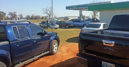 Pictured top and inset: Hopeful millionaires crowded the Grey Goose package store Wednesday afternoon on Highway 97, just a few yards from the Alabama state line. Pictured below: Lottery hopefuls wrapped up other businesses near the state line, including convenience stores in Davisville (below) and Century. Reader submitted photos by Ditto Gorme and Eric Hare for NorthEscambia.com, click to enlarge.
