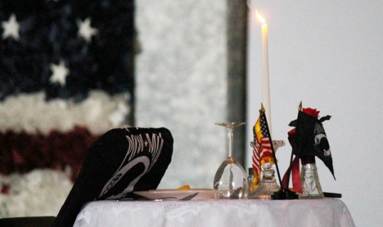Many wiped tears from their eyes as the students prepared a small, white table with a place setting for one in front of an empty black chair. The ceremony represented the never-ending hope for the return of MIA soldiers.