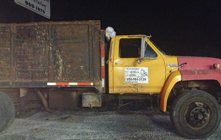 Pictured: When thick smoke finally cleared off Highway 29 Thursday evening, firefighters discovered this truck was the source. NorthEscambia.com photo by Kristi Smith, click to enlarge.